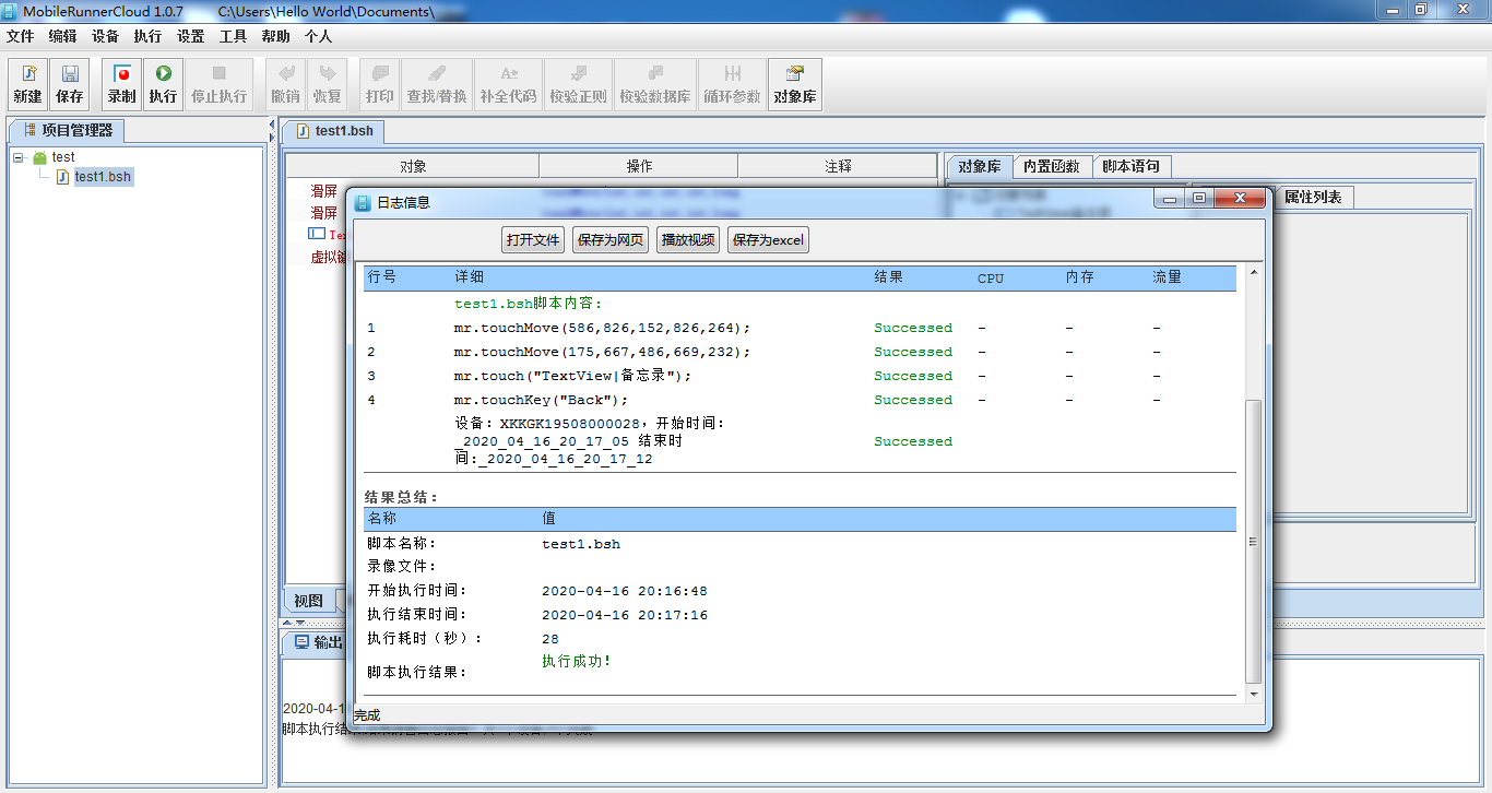可以按需轻松录制并编写脚本。MR与远程手机连接后,用户操作工具上显示的手机屏幕,MR自动记录对手机的操作过程,把操作过程录制为自动化脚本。