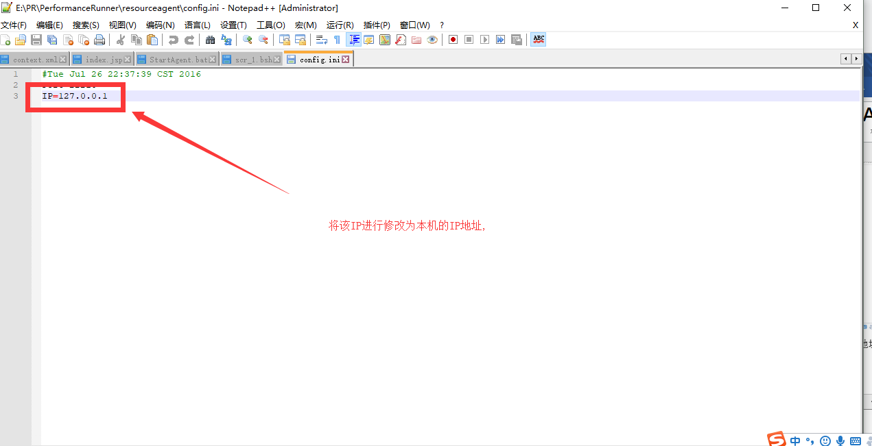 2.修改PR的安装目录下的PerformanceRunner esourceagent下的config.ini的IP地址进行修改为本机的IP地址;
