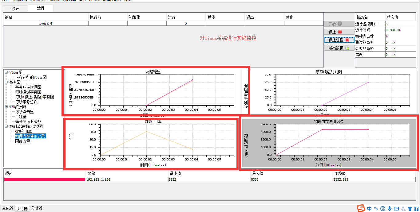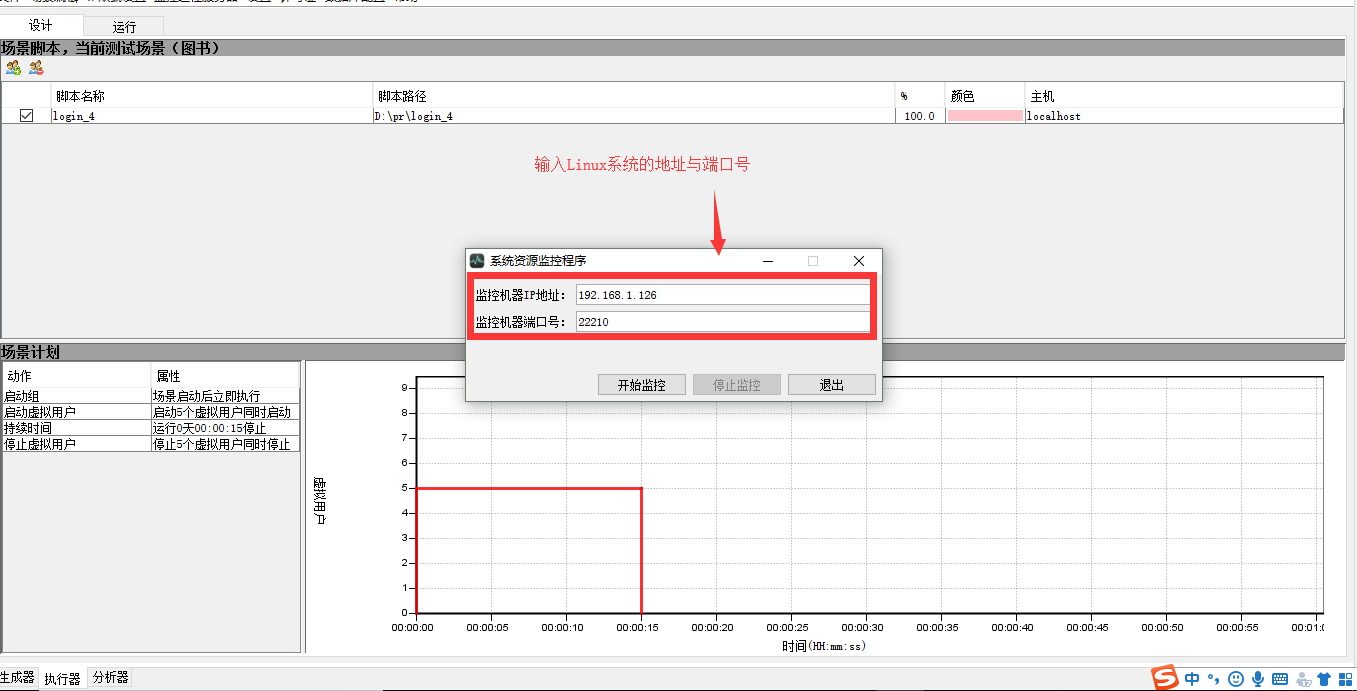 4.执行场景时打开监控Linux系统的IP与端口号;